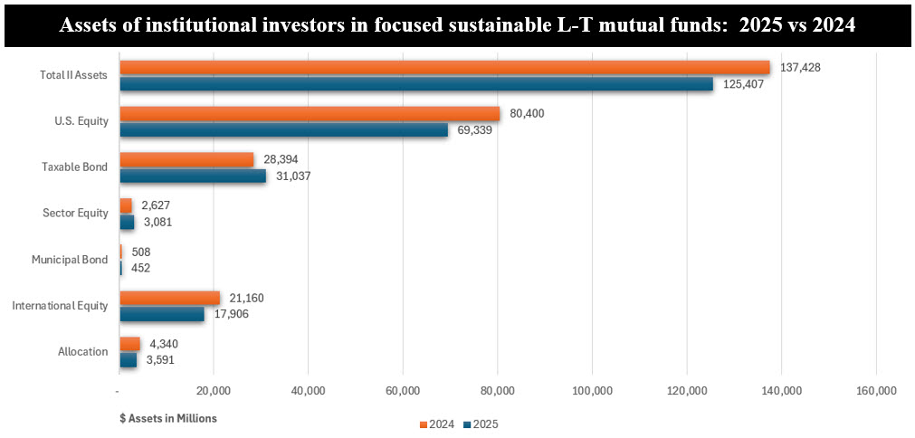 Sustainable Bottom Line: A narrow decline still leaves institutional investors accounting for over 50% of focused sustainable L-T mutual fund assets and benefits all investors.